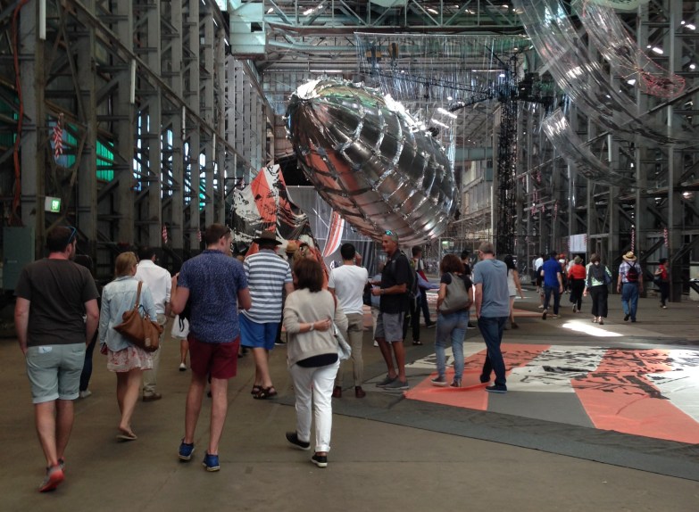 Jumping on board a water taxi, the tour then travelled across the glistening Harbour to Cockatoo Island, known for the duration of the Biennale as the ‘Embassy of Real’. The Island is one of several ‘embassies of thought’ curated by Artistic Director Stephanie Rosenthal as part of the festival’s broad theme, ‘The Future Is Already Here – It’s Just Not Evenly Distributed’.